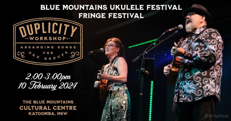 Source : www.facebook.comDuplicity Workshop at Blue Mountains Ukulele Festival 2024, Blue